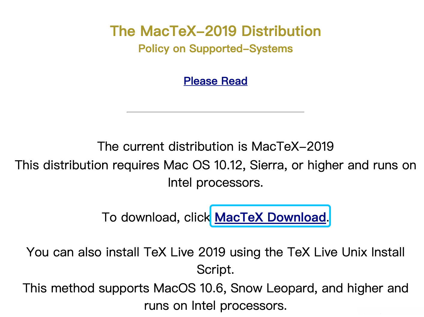 获取下载链接http://www.tug.org/mactex/, 单击图中标有Download的部分进行操作 即可完成下载