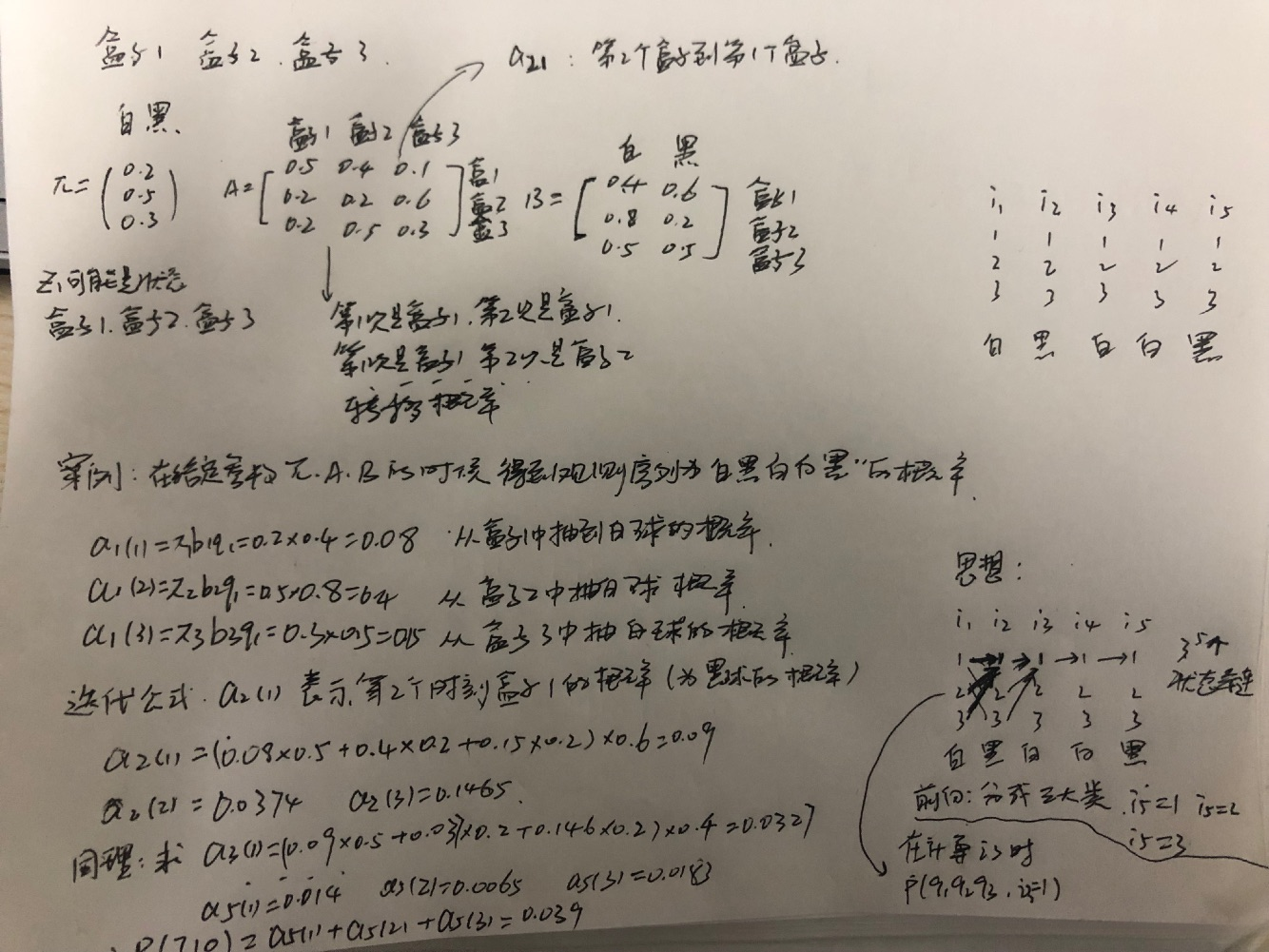 前向算法(求解概率问题)就是 计算出来i5时的概率相加就得到最终的概率