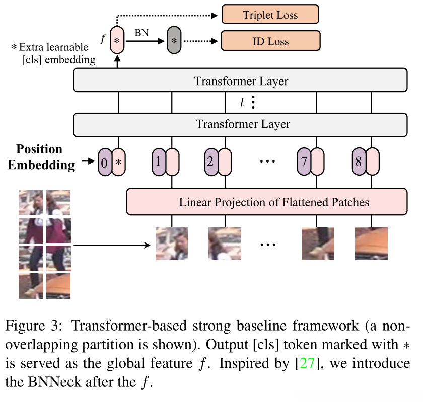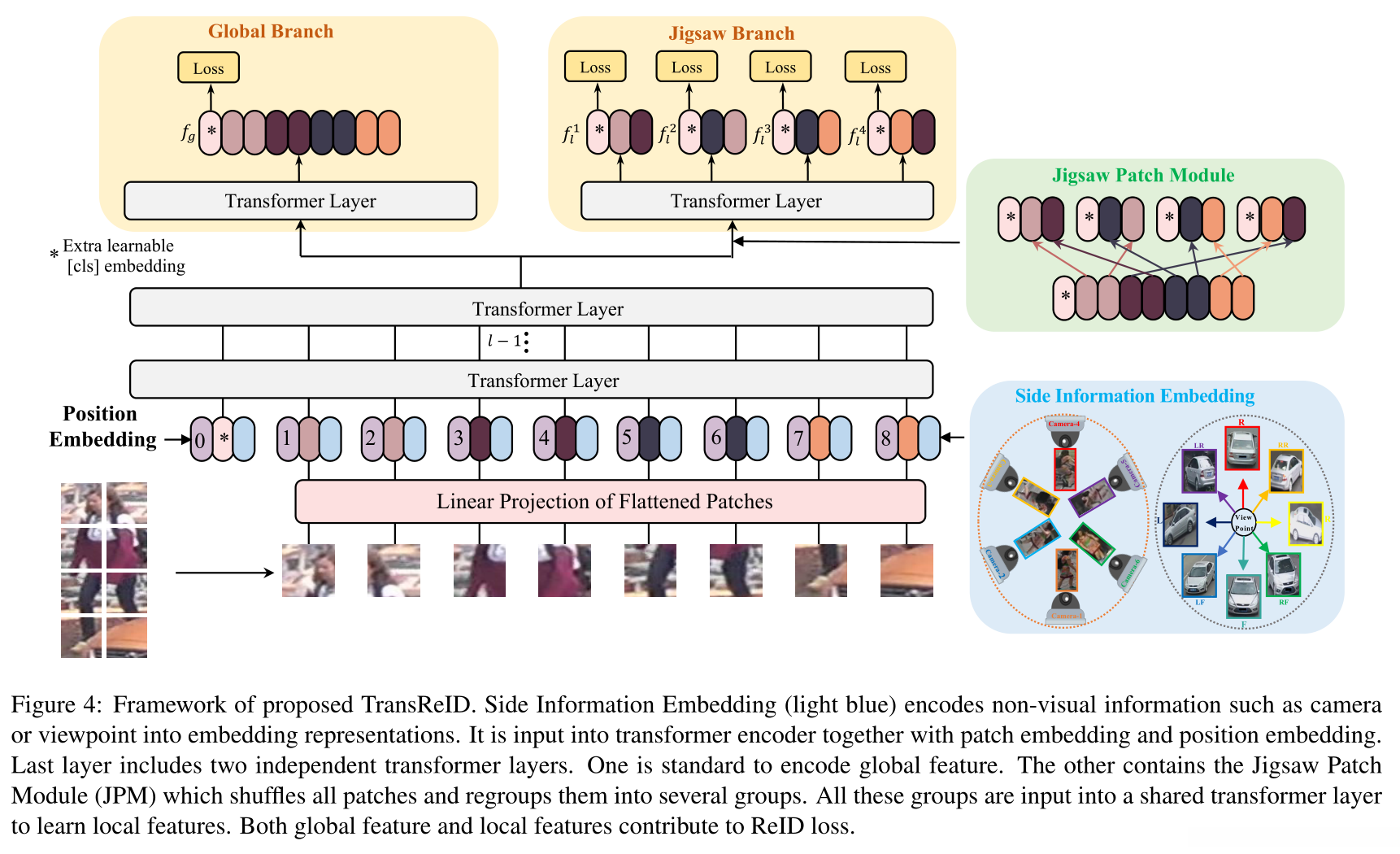 作者提出了完全基于transformer结构的reid模型叫做 TransReID。