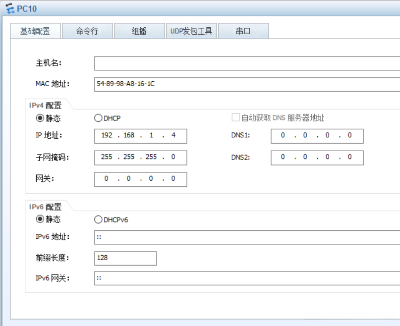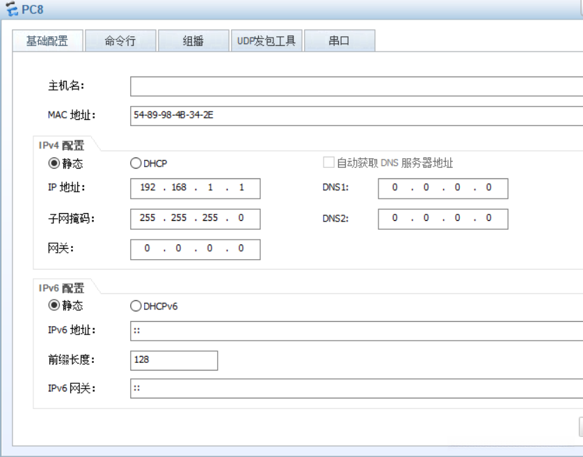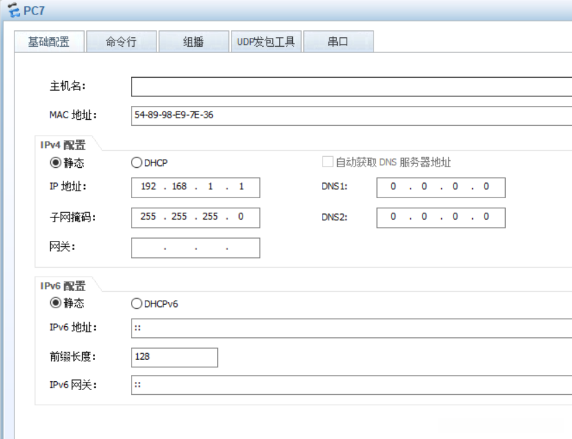 - 首先对PC机进行设置(采用VLAN划分实验环境中的PC机,并确保所有设备处于同一网络段内),其中IP地址可以在不同网络中自由分配,并且所有设备必须使用相同的默认网关。