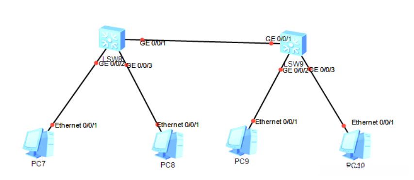 [Huawei-GigabitEthernet0/0/1]port link-type trunk /将当前端口配置为trunk模式,并使该接口允许多个VLAN通行。