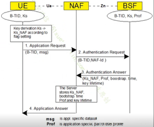 - BSF验证成功后将prof及有效周期等信息反馈给NAF;