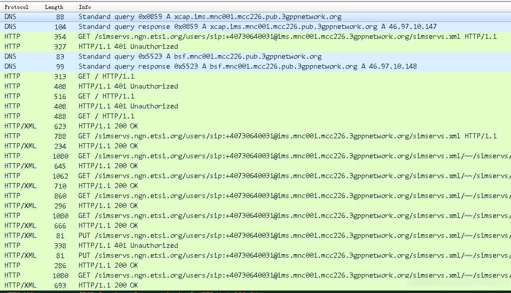 补充业务(Supplementary service)包括呼叫等待、呼叫转移等,在VoLTE和3G网络中广泛应用。UT是IMSUE与VoLTEAS之间的接口,使用XCAP协议进行交互。VoLTEAS提供各种VoLTE业务服务。GBA架构用于用户认证认证分为引导认证和业务认证两步:第一步由UE完成BSF引导认证并获得密钥BTID;第二步UE通过NAF完成业务访问请求并验证身份。整个流程涉及HTTP请求认证和数据传输过程,并通过Wireshark抓包分析验证了关键步骤和技术参数的有效性。