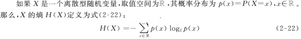 熵又可以称为自信息,可以视为描述一个随机变量的不确定性的数量。一个随机变量的熵越大,它的不缺定性越大,那么正确估计其值的可能性就越小,越不确定的随机变量越需要大的信息量用以确定其值。