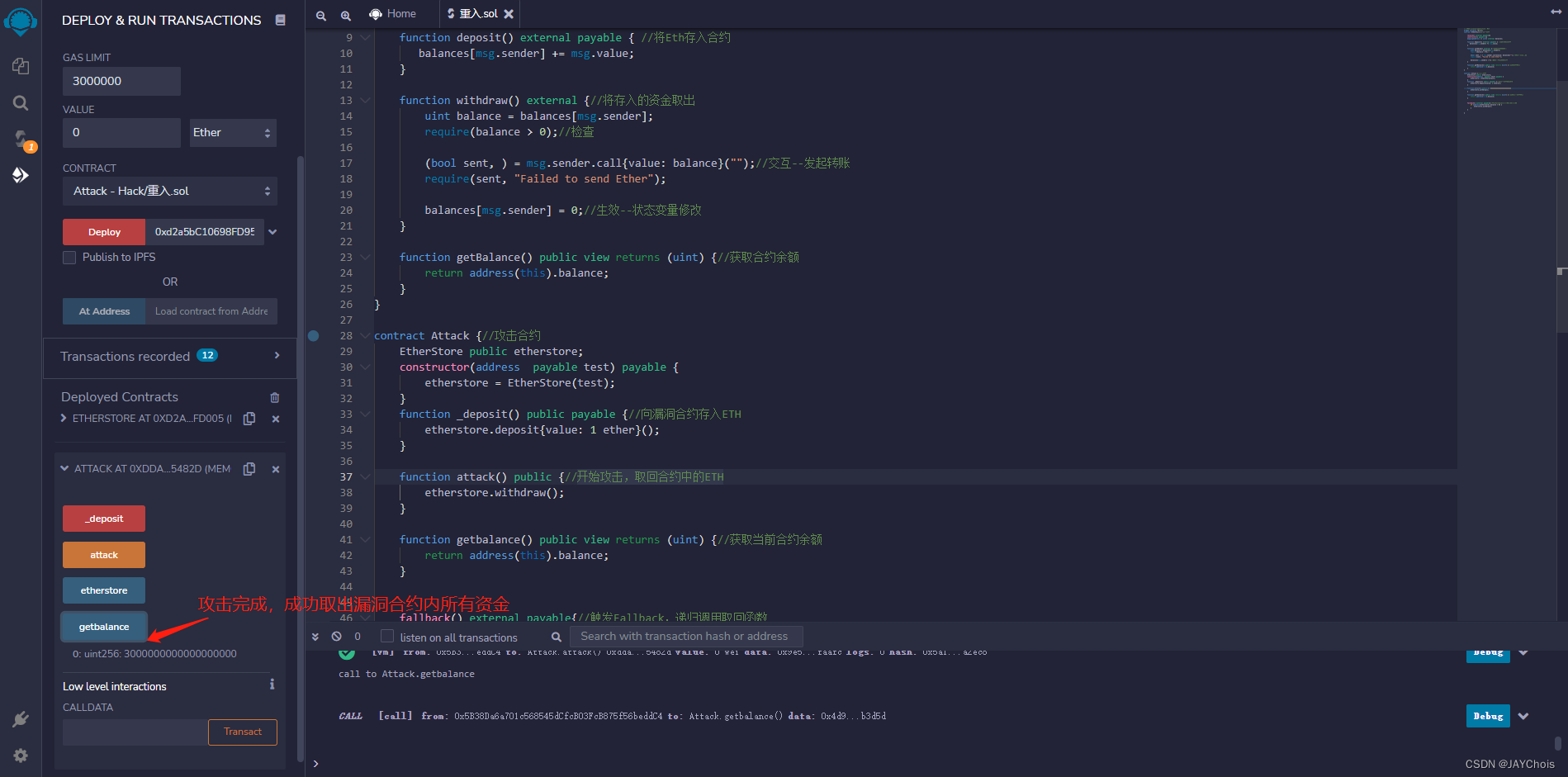 3、攻击完成(注:1Ether的单位为10的18次方Wei)