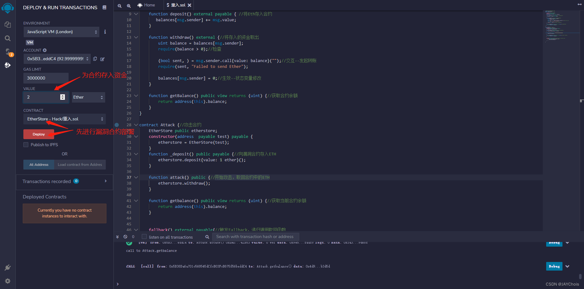 (bool sent, ) = msg.sender.call{value: balance}("");//交互--发起转账