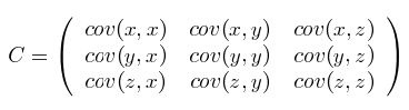 这个概念相当直观,无需复杂的理解。为了更直观地理解这一概念,我们可以考虑一个三维数据集的简单示例。假设数据集具有三个维度,则协方差矩阵的计算基于这些维度的数据。