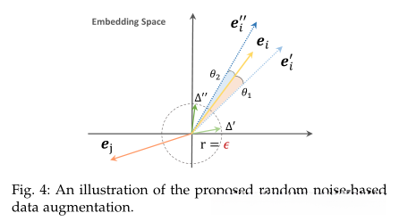 通过引入缩放后的噪声向量到ei后, 从而使其旋转了两个微小的角度(如图4所示θ1和θ2). 每个这样的旋转都与ei的变化相关联, 并生成一个增强表示.