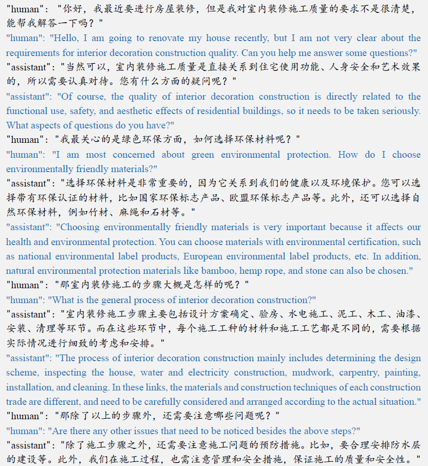为了优化模型在特定领域中的性能并解决领域偏差问题, 基于高质量的家具装饰书籍与家具装饰网站文章, 收集整理了约25,000条指导性数据, 以便更好地掌握相关领域的知识.