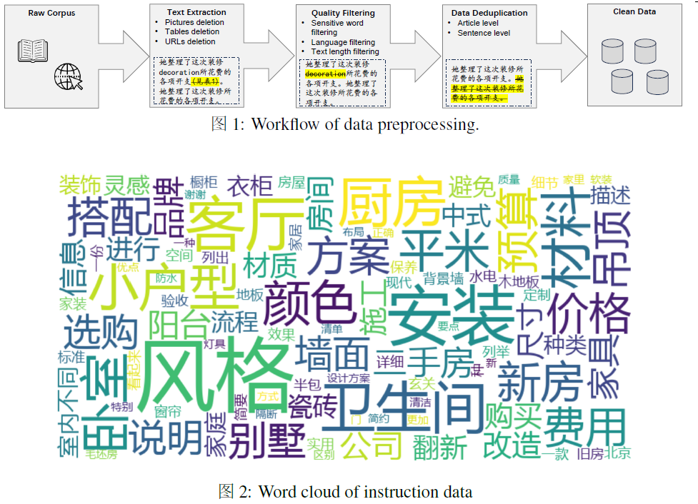 ChatHome专为家装改造领域设计的语言模型包含两部分首先是利用专业文章标准文件以及网络资源构建的大规模家装改造相关数据集经过对通用语言模型进行微调优化;其次是基于家装改造主题设计的一系列提示性问答问题通过与数据集交互从而实现对指令处理流程的有效优化