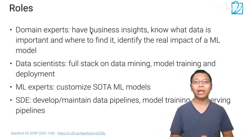 领域专家、数据科学家、机器学习专家(对模型做定制化)、软件开发工程师(SDE)