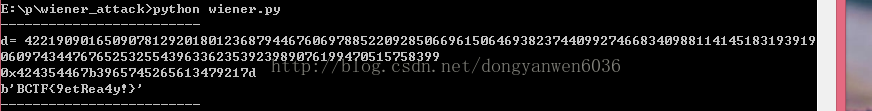 为了获得d的Python脚本,请参考位于https://github.com/pablocelayes/rsa-wiener-attack平台上的版本,并稍作修改。