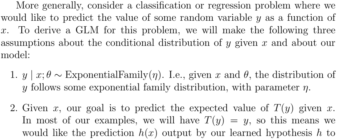 根据题意,即当x给定时,y服从几何分布。那么如何构造训练集的几何分布GLM模型呢(讲义中前面用到的logistic regression就是一种GLM模型)?先看讲义中的几段话。
