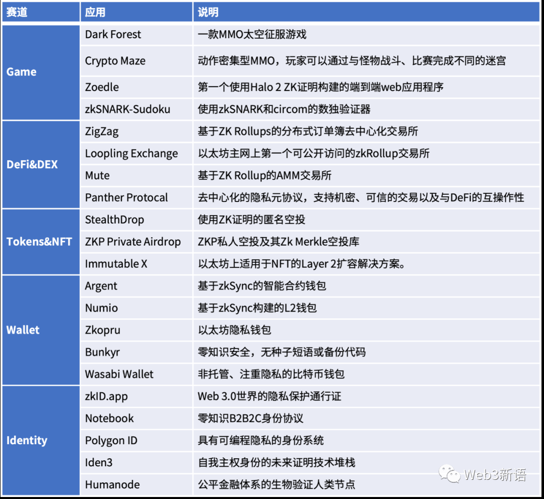 基于该基础设施,在游戏、去中心化金融(DeFi)、数字收藏品(NFT)以及数字身份等领域中的顶层应用中展现了其扩展能力和隐私保护能力。具体应用场景可参考下表