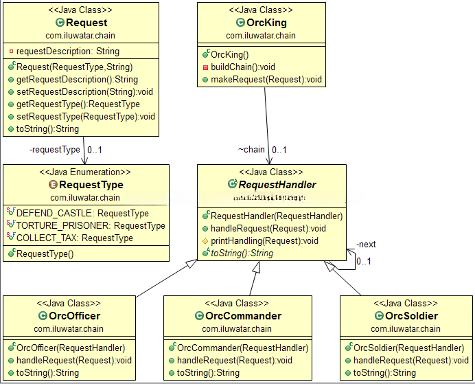 chain = new OrcCommander(new OrcOfficer(new OrcSoldier(null)));