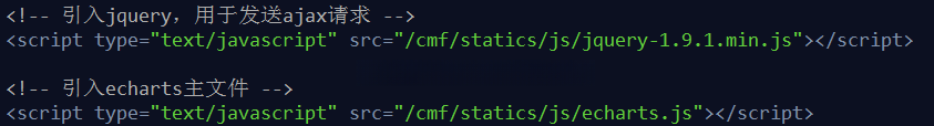 - 引入echarts主文件,同时引入jquery包,用于发送ajax请求到后台