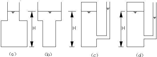15、【单选题】图示四个容器内的水深均为H,则容器底面静水压强最大的是:( )
