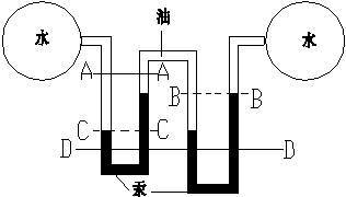 66、【填空题】用U形水银压差计测量两根同高程的输油管道中心的压强差。已知油的密度ρ=800kg/m3,水银的密度ρ’=13600kg/m3,U形管两边的水银面的高差为25mm,则两根油管中心的压强差等于____________Pa。