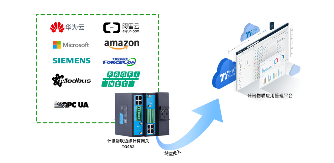 TG452边缘计算网关具有功能多样性和灵活性,在通讯协议方面包含多种类型,并支持Modbus、三菱S7-200R系列、西门子ST系列以及欧姆龙LC系列等主流协议;该网关能够连接国内外知名品牌的PLC设备。