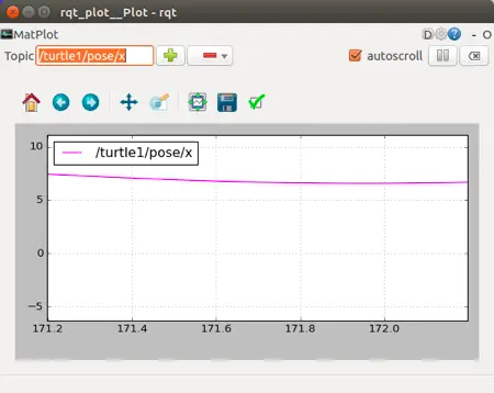 当前,在此编辑区域的Topic字段中录入/turtle1/pose/x,并分别按下回车键和+号键时(或者同时按下这两个快捷键),系统界面将相应地进行更新。