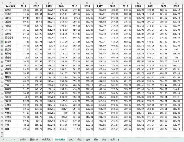 最新版 !!北京大学数字普惠金融指数2011-2023年