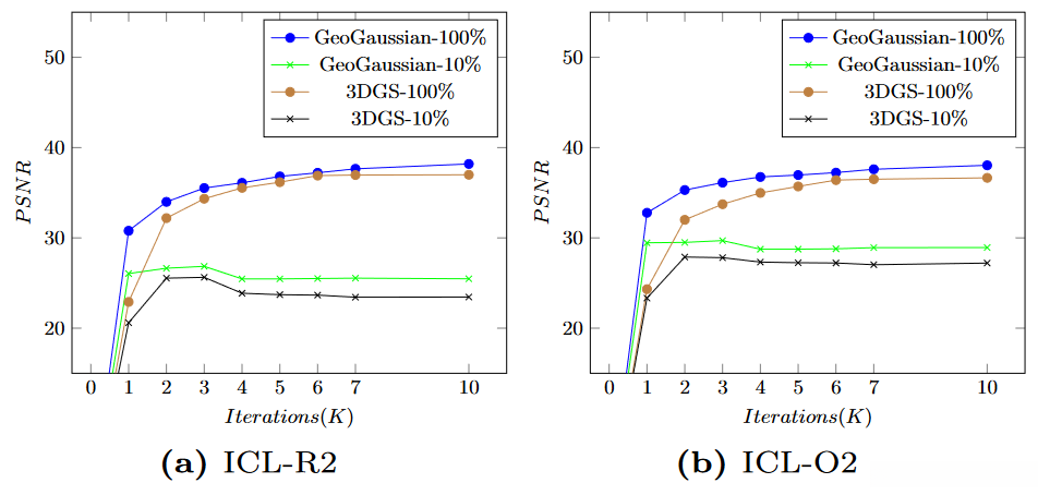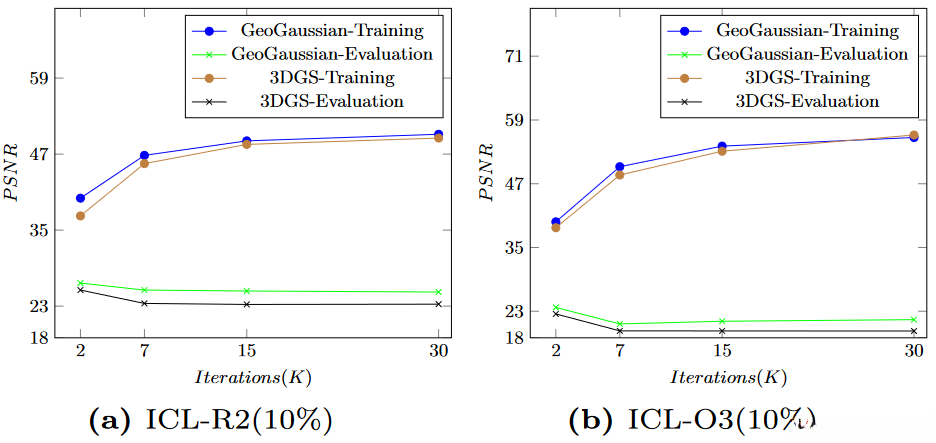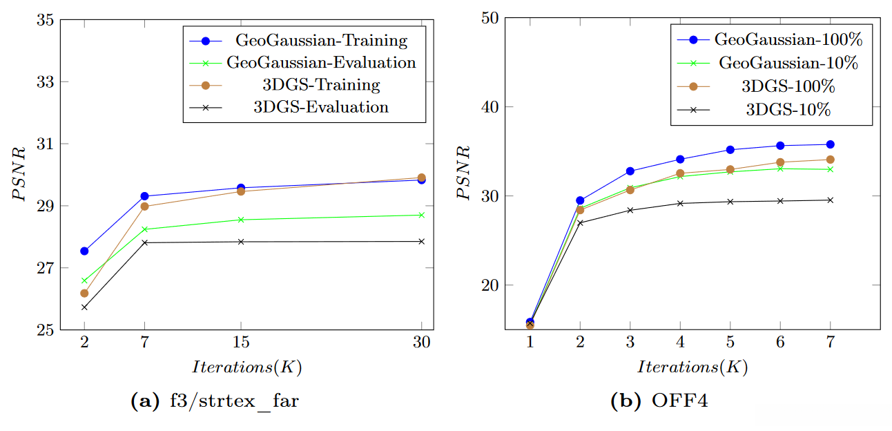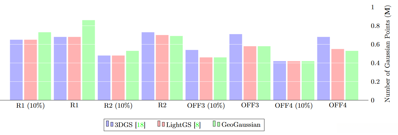 由GeoGaussian和3DGS生成的高斯模型基于复制序列进行了分析