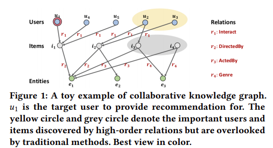 - 我们特别突出了协作知识图中显式建模高阶关系的关键作用,并借助附加信息来提升推荐质量。