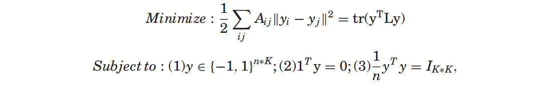 其中L是图拉普拉斯矩阵 diag(A1)-A,约束2让编码平衡,约束3让位之间无关联。