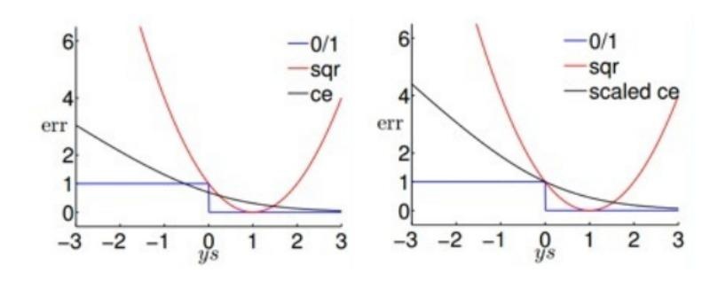 经过换底后的交叉熵损失和平方损失都是0/1损失的上界: