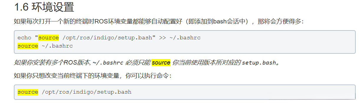 关于source echo 这两条指令,ros indigo的wiki 安装教程说的很清晰
