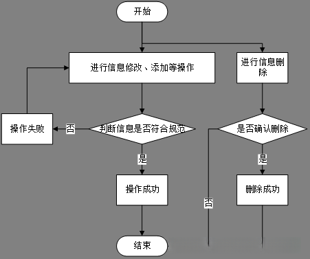 系统中包含若干个管理模块存在相同特性,由此我可以将这些模块归并进行介绍。信息管理功能的流程图如上图所示。