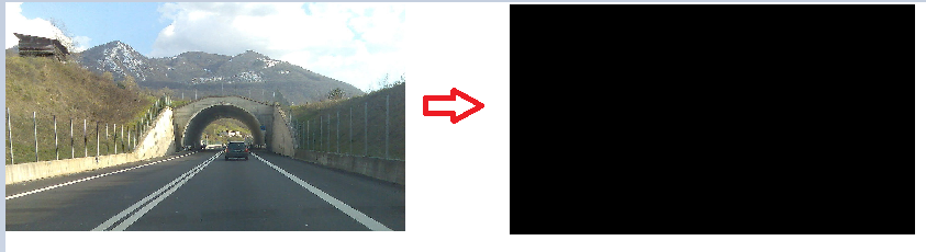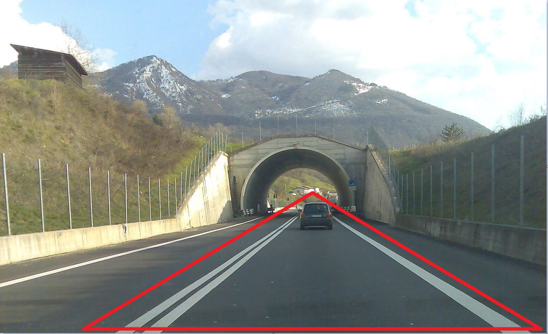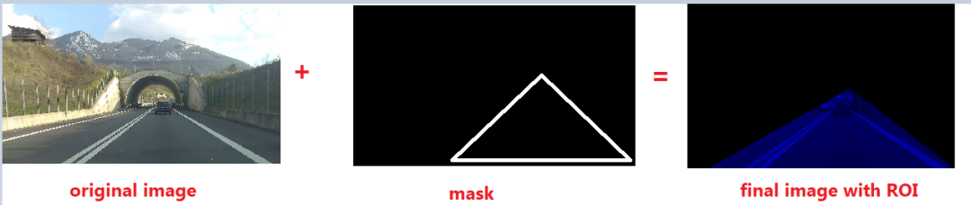 驾驶时,为了让汽车保持在车道上,你只关注当前道路的下一个100米。而且,你也不关心护栏另一边的路。这就是我们感兴趣的区域。我们从图像中隐藏不必要的细节,只显示能帮助我们找到车道的区域。