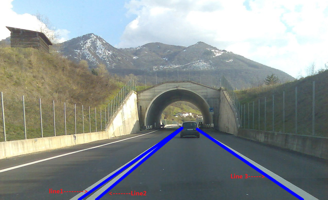 在图像中检测到3条线。图像中可能检测到数百条线。因此,调整参数以获得尽可能少的线