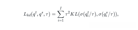 在现有蒸馏方法中,普遍采用带有温度超参的KL散度损失函数进行计算,从而实现教师模型与学生模型之间的知识蒸馏,公式如下: