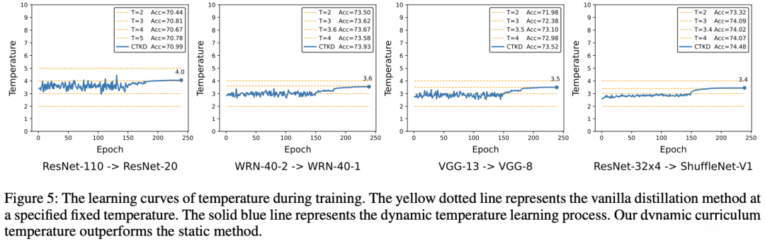 在蒸馏任务中,是否可以让网络能够自主学习适合的温度调节参数进行蒸馏,并通过借鉴课程学习的思路,从而形成蒸馏难度逐步提升的体系?