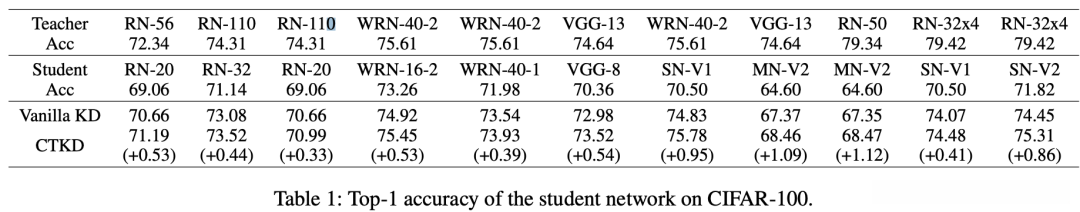 在蒸馏任务中,能否让网络自主学习一个适合的温度调节参数进行蒸馏,并同时借鉴课程学习的思想,逐步提升蒸馏难度?在此基础上,我们提出了一种简洁有效的动态温度调节蒸馏方法,命名为CTKD。