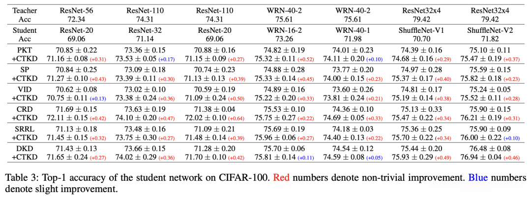 从图中可以看出,CTKD在动态学习过程中展现出T的整体特性。将其应用于多种现有的蒸馏方案,不仅能够显著提升性能,而且具有广泛的适用性。