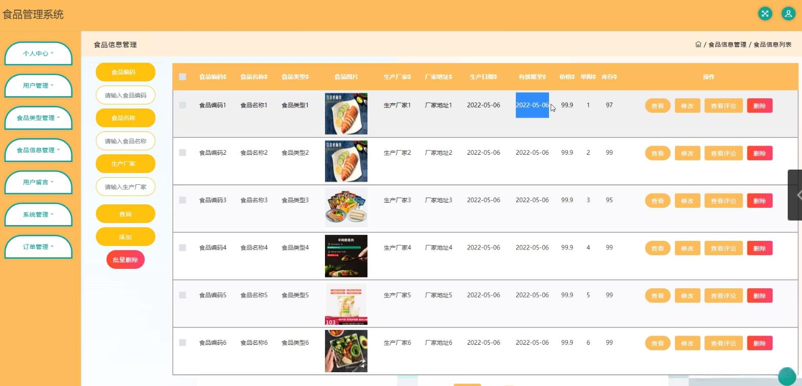 食品管理系统(JSP+java+springmvc+mysql+MyBatis)