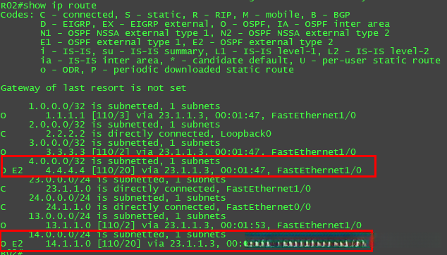 R02的路由表: