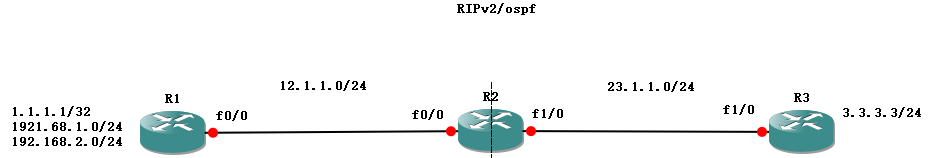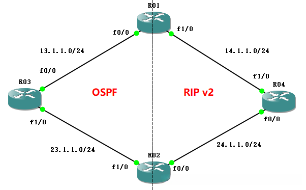 配置完接ip和路由后,在R01和R02上进行路由重分发
