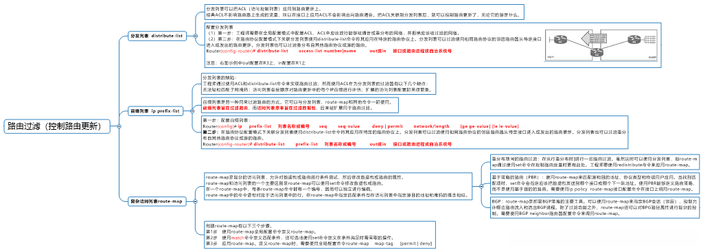 前缀列表是另一种用来过滤路由的方式。它可以与分发列表、route-map和其他命令一起使用。