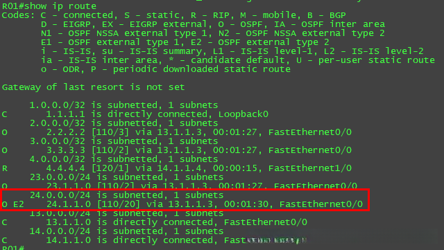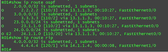 distance 130 1.1.1.1 0.0.0.0 1 //1.1.1.1 0.0.0.0 是对端R01的RID 1是ACL号