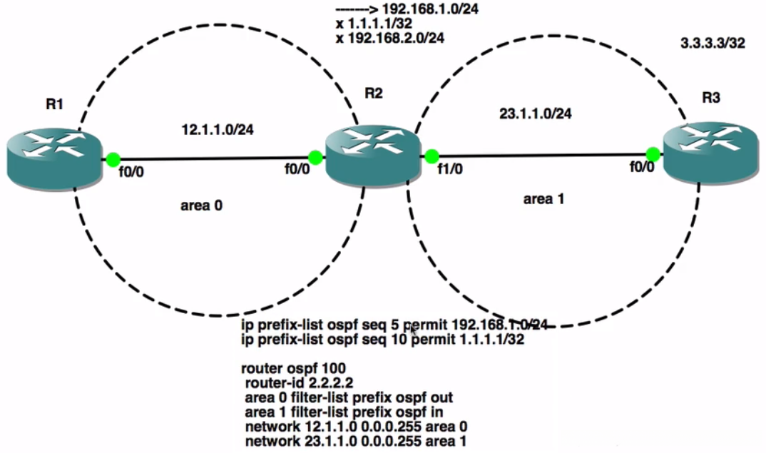 ② filter-list 过滤列表应用于 OSPF 协议 区域间 使用