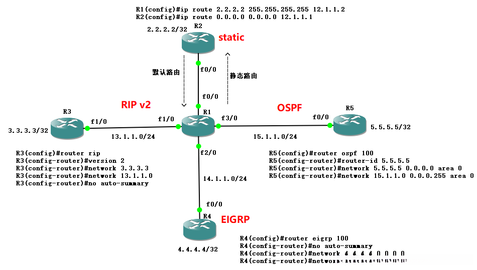 (1) 重分布到EIGRP和RIP的路由被分配的度量为0,它被解释为无限大或不可达。此规则的例外情况是重分布直连或静态路由,以及在两个EIGRP自治系统之间重分布路由。