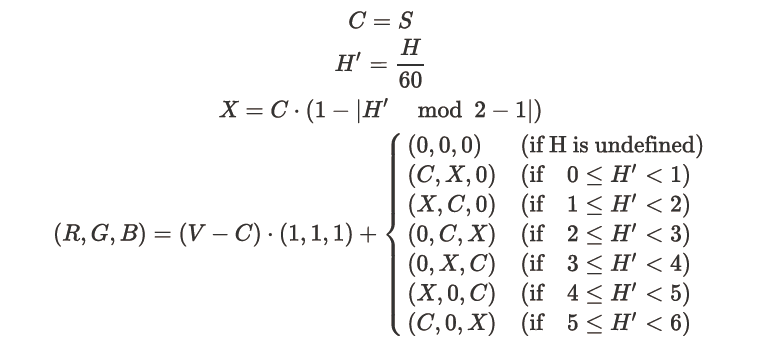 饱和度:色彩的纯度,饱和度越低色彩越暗淡(0<=S<1)