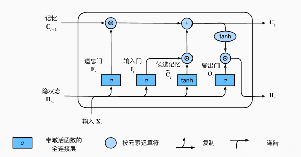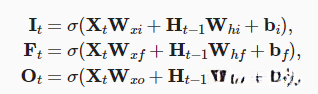 如下图所示,在LSTM架构中包含了输入门、遗忘门以及输出门这三个关键组成部分;这些门均通过sigmoid激活函数进行处理;因此其取值范围在(0,1)区间内。