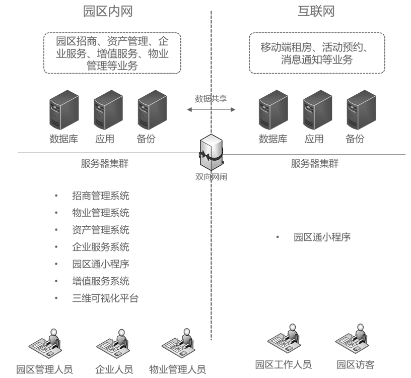 为促进文化园区智慧化发展进程,本项目构建了多套功能完善的业务处理系统...用于管理各类运营事务;这些应用系统主要用于管理各类运营事务。