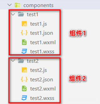 从表面来看,组件和页面都是由 .js、.json、.wxml 和 .wxss 这四个文件组成的。但是,组件和页面的 .js 与 .json 文件有明显的不同: