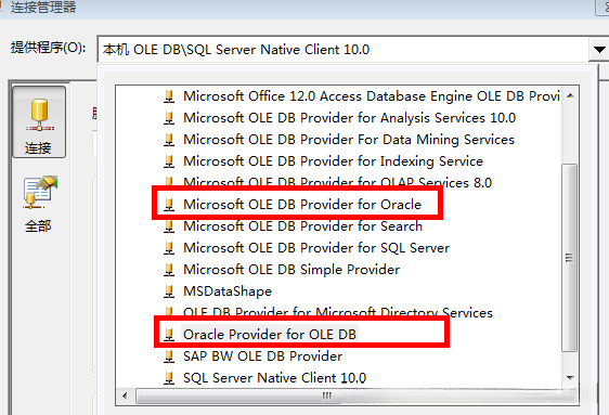 (2)连接Oracle的驱动常见的有两种,一个是微软做的MSDAORA.1,这个驱动程序只有32位的;另一个是oracle做的OraOLEDB.Oracle.1,这个驱动既有32位也有64位,对应着就是oracle32、64位的客户端,这两个客户端是可以共存的。