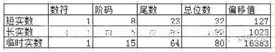 对于不同长度的浮点数,阶码与小数位分配的数量不一样,如下: